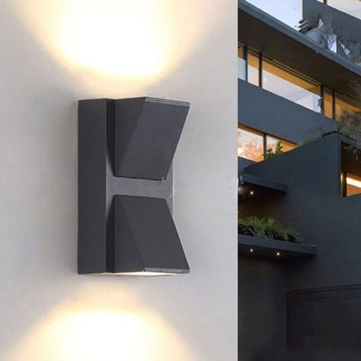 Đèn gắn tường ngoài trời hắt 2 đầu hiện đại hình chữ nhật EDI-008 có thiết kế hiện đại tối giản với hình tam giác trơn nhẵn, ánh sáng phát ra từ 2 đầu đèn với cường độ tùy thuộc vào công suất của chúng.