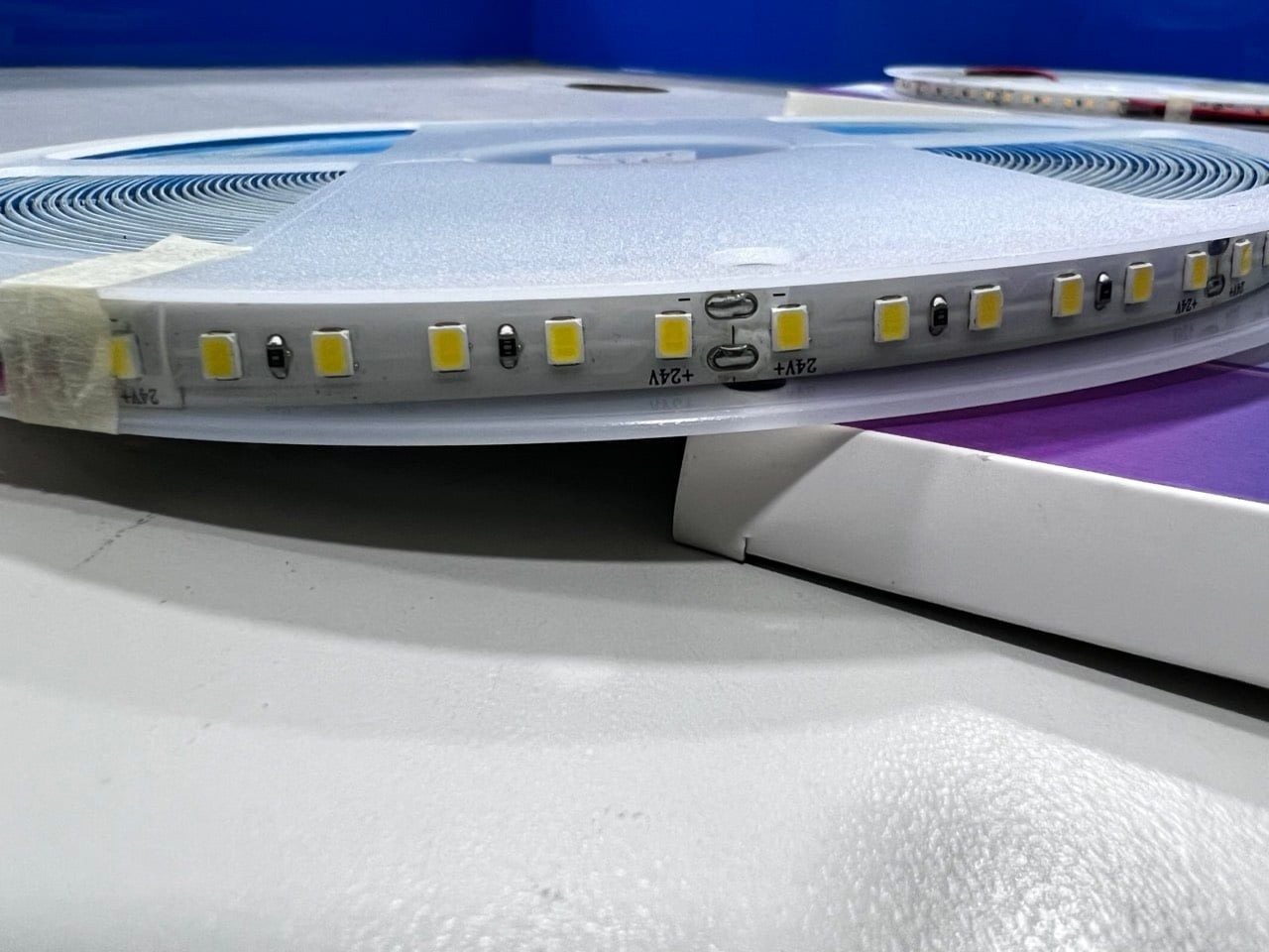- Sau lưng led dây 24v có lớp keo 2 mặt, bạn có thể dán vào thanh nhôm