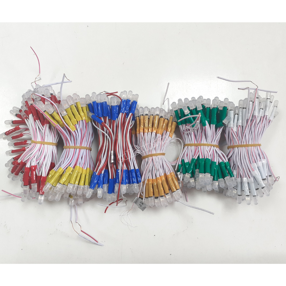 - LED ruồi 5 ly Có 6 màu: Đỏ, Vàng, Xanh lá, Xanh dương, Trắng, Hồng, khách tha hồ phối màu cho bắt mắt.